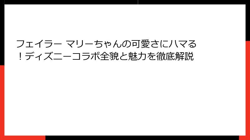 - 初コラボの経緯:ディズニーのクラシック映画の復活ブームが、フェイラー マリーちゃんの誕生を後押ししました。