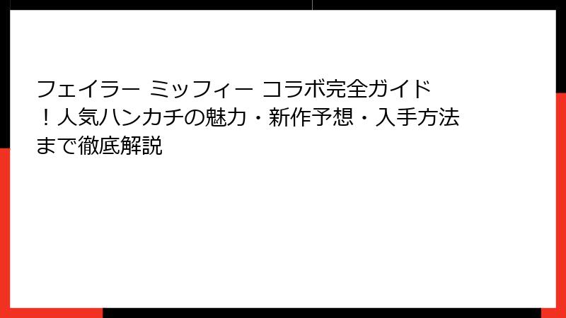 フェイラー ミッフィー コラボ完全ガイド!人気ハンカチの魅力・新作予想・入手方法まで徹底解説