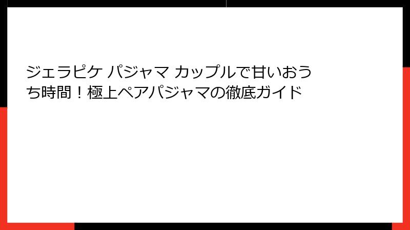 - ジェラピケ パジャマのカップルコーディネート術の基礎