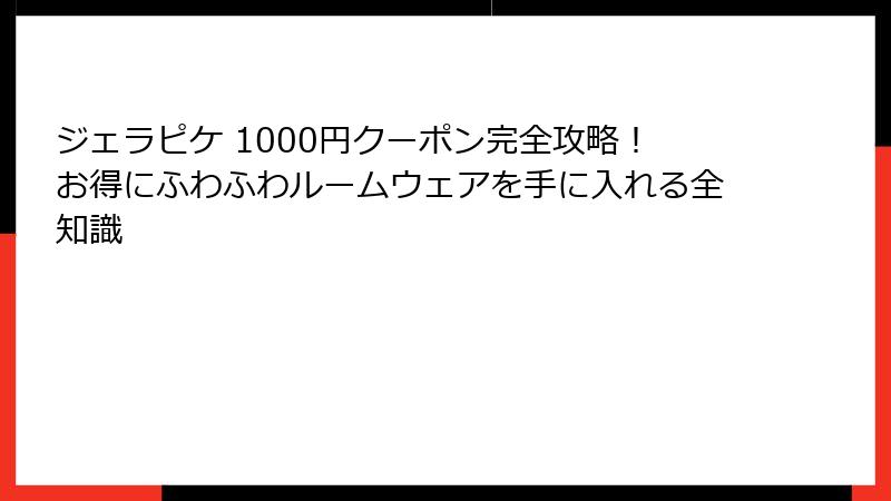 - ジェラピケ 1000円クーポンの最新情報と入手方法を徹底解説