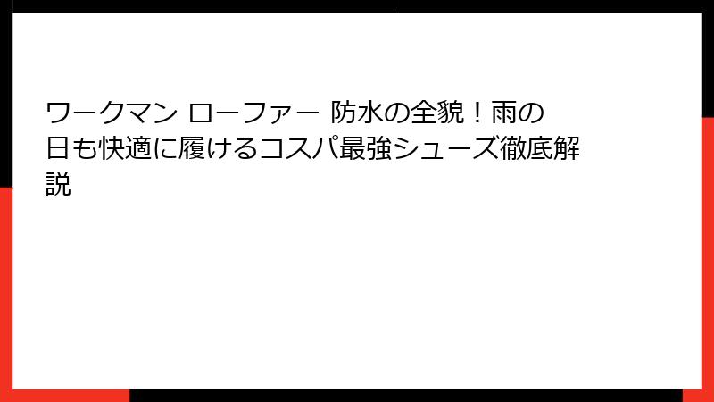 - ワークマン ローファー 防水の魅力とは?雨の日も快適に履けるコスパ最強シューズの概要