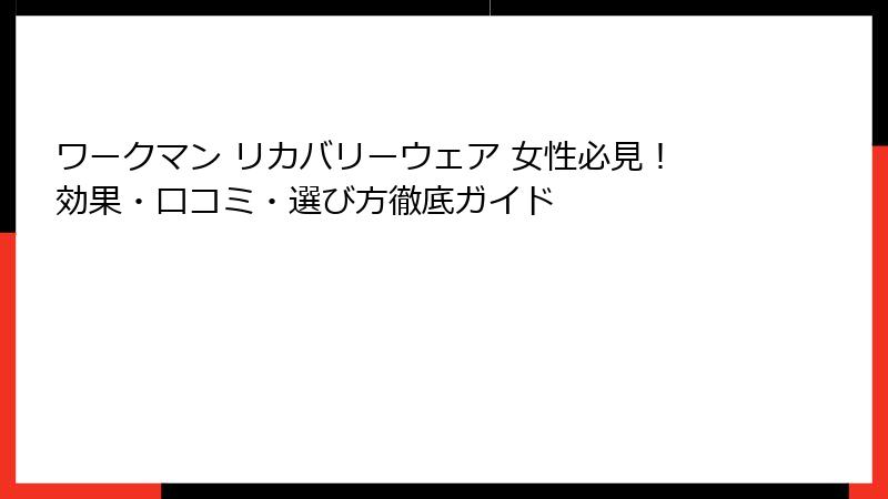 - ワークマン リカバリーウェアの効果は本物?女性の疲労回復メカニズムと科学的根拠