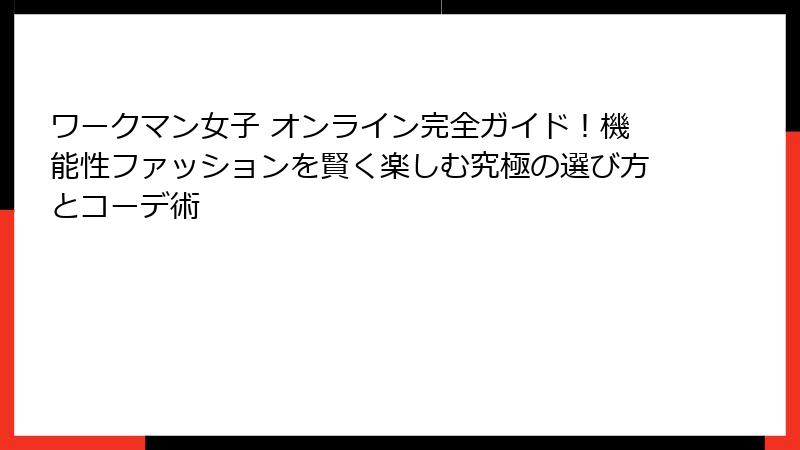 ワークマン女子 オンライン完全ガイド!機能性ファッションを賢く楽しむ究極の選び方とコーデ術