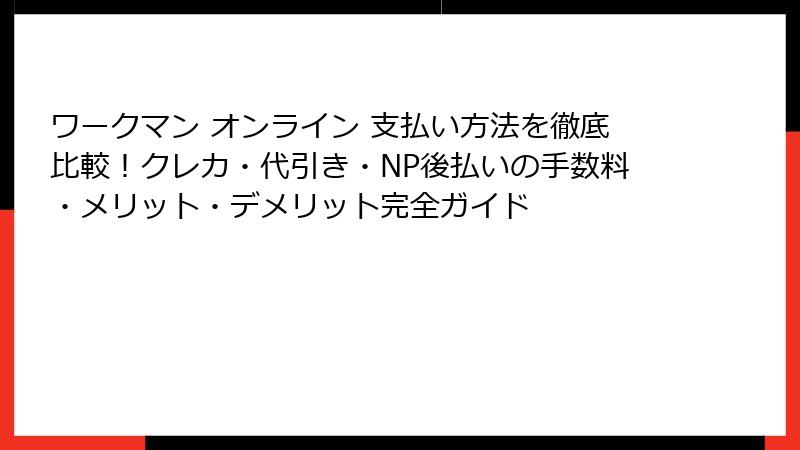 - ワークマンオンライン支払い方法のまとめと賢い選び方