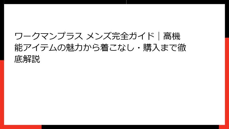 このガイドでワークマンプラス メンズのすべてを網羅しました。