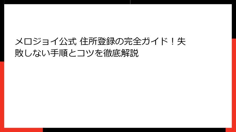 この記事では、メロジョイ公式サイトの概要から始め、住所登録の重要性を徹底的に解説していきます。