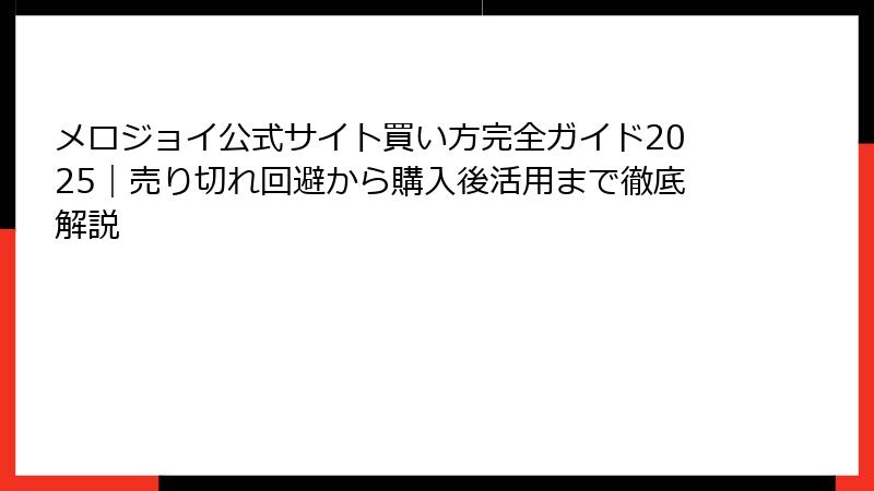 メロジョイ公式サイト買い方完全ガイド2025|売り切れ回避から購入後活用まで徹底解説