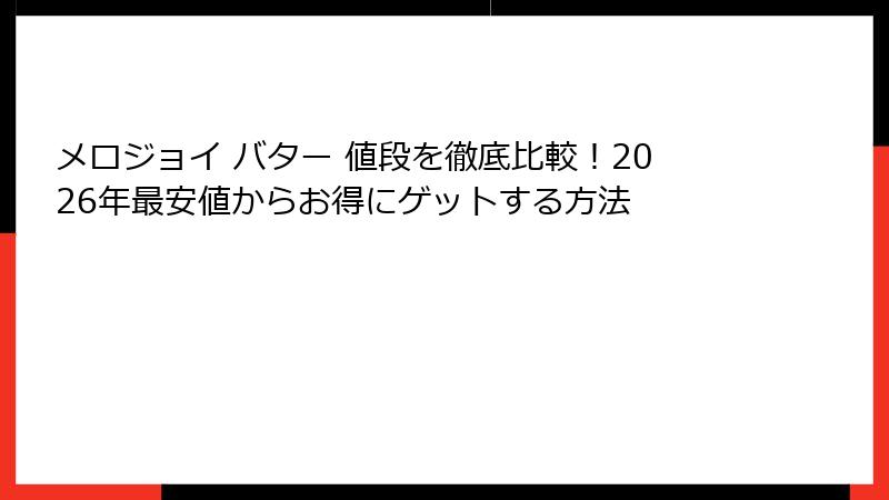 - メロジョイ バターの値段を全網羅!楽天・Amazon・メルカリでの最安値比較2026年版