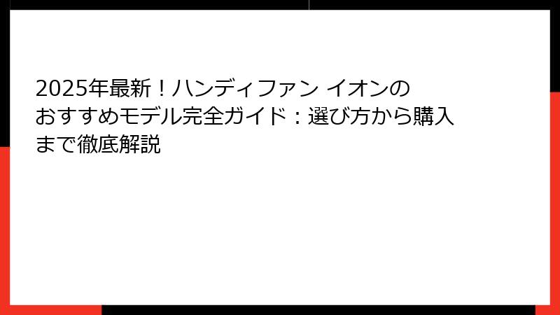 この記事では、イオンのハンディファンの魅力、選び方のポイント、そして2025年最新モデルの詳細を徹底解説します。