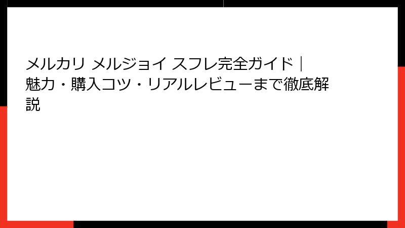 メルカリ メルジョイ スフレのファンにとってはもちろん、初めて知る方にも役立つ情報満載でお届けしますので、ぜひ最後までお読みください。