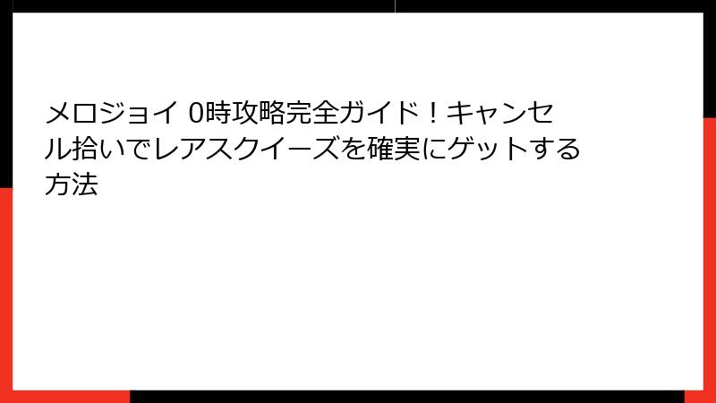 - メロジョイ 0時のキャンセル拾いとは?仕組みとタイミングを徹底解説