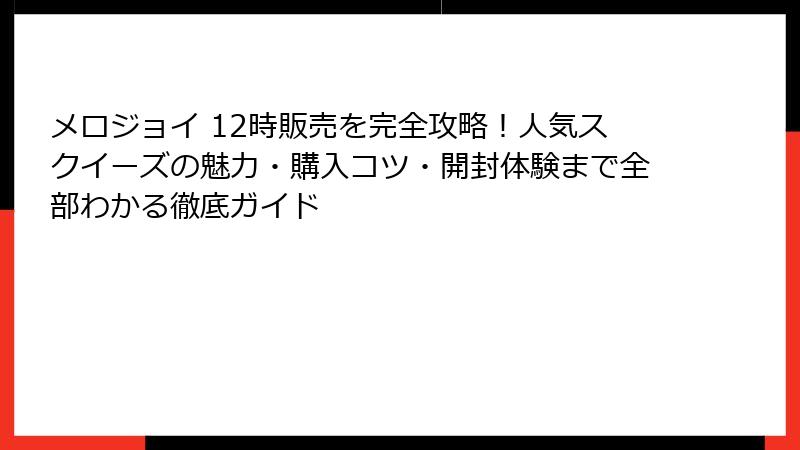 あなたは今、メロジョイの魅力に引き込まれているのではないでしょうか?毎日12時に訪れるあの興奮、スクイーズおもちゃの柔らかな触感、そして可愛らしいデザインが織りなす世界。