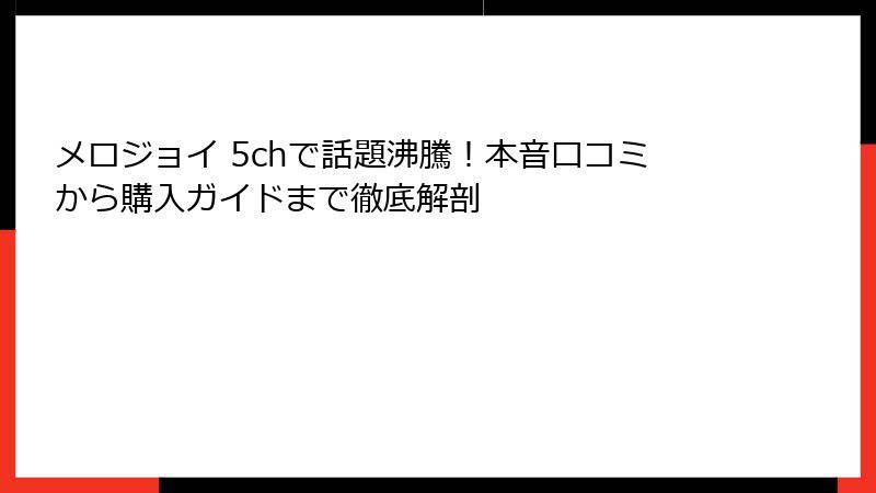 メロジョイ 5chのキーワードで検索する人が増えている背景には、SNSや動画共有サイトでの口コミが広がっていることが挙げられますが、まずはメロジョイそのものの全貌を明らかにしていきましょう。
