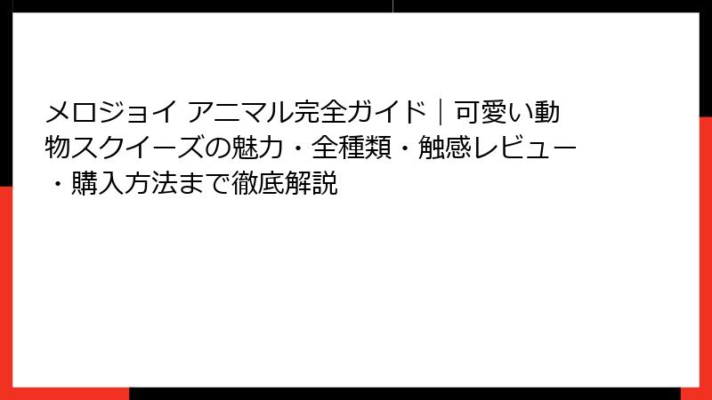 - メロジョイ アニマルシリーズとは? 人気爆発のスクイーズ玩具の基礎知識