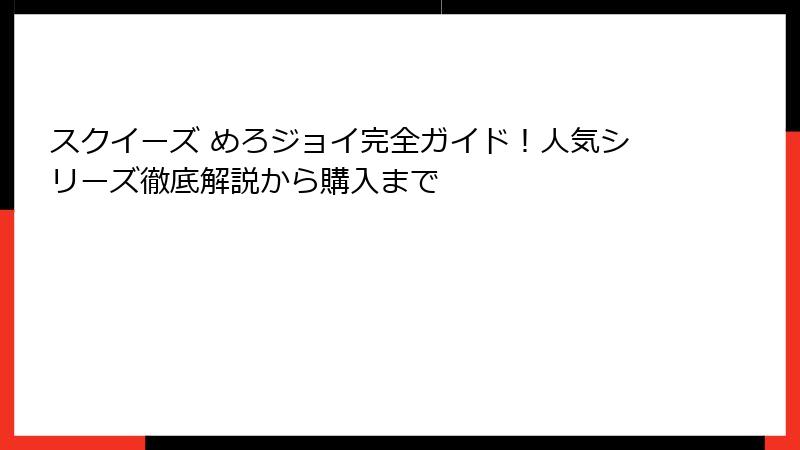 スクイーズ めろジョイのガイドで、あなたの選択をサポートします。