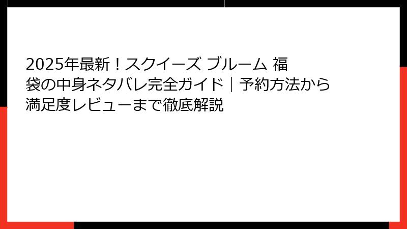 この提案が、スクイーズ ブルーム 福袋の実践ガイド。