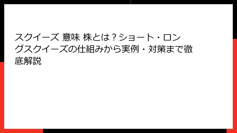 これらを区別して理解することが、スクイーズ 意味 株の核心です。