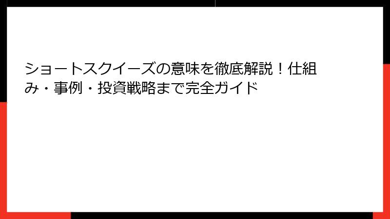ショートスクイーズとは、金融市場において特に株式取引で発生する現象で、空売りのポジションを持つ投資家が株価の上昇によって強制的に買い戻しを迫られる状況を指します。