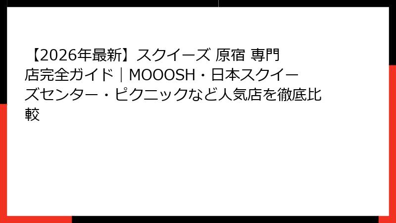 【2026年最新】スクイーズ 原宿 専門店完全ガイド|MOOOSH・日本スクイーズセンター・ピクニックなど人気店を徹底比較