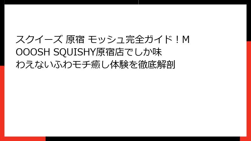 あなたがスクイーズ 原宿 モッシュを検索した背景には、日常の疲れを癒したいという無意識の願いがあるのかもしれません。