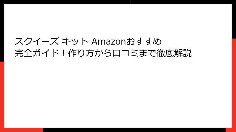 - 今すぐAmazonでスクイーズキットを探そう! 最終購入ガイドとおすすめリンク