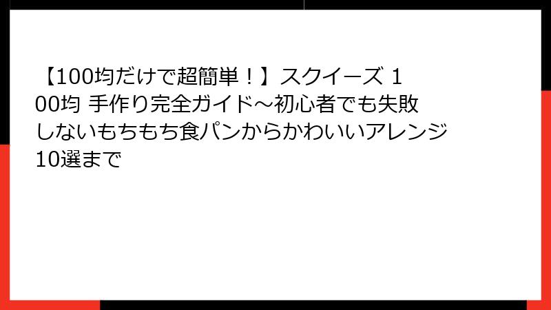 【100均だけで超簡単!】スクイーズ 100均 手作り完全ガイド~初心者でも失敗しないもちもち食パンからかわいいアレンジ10選まで