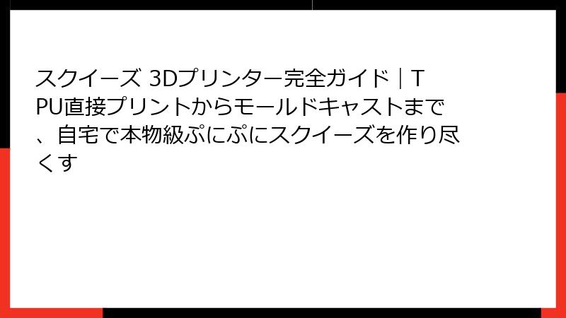 スクイーズ 3Dプリンター完全ガイド|TPU直接プリントからモールドキャストまで、自宅で本物級ぷにぷにスクイーズを作り尽くす