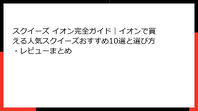 - スクイーズ イオン購入ガイド:失敗しない選び方と店舗活用術