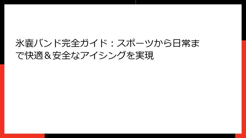 ハンズフリーで効率的なアイシング、RICE処置の科学的効果、多様なシーンでの活用法、人気モデルの詳細レビュー、そして未来のトレンドまで、氷嚢バンドがあなたの生活に欠かせない理由がお分かりいただけたはずです。