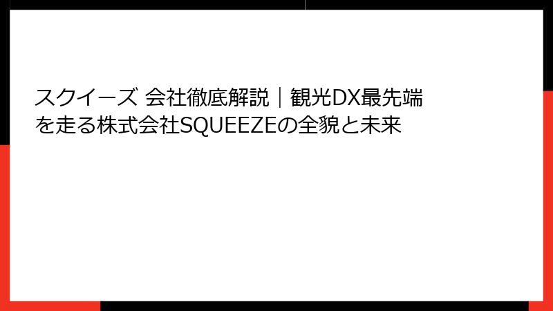 - スクイーズ会社に今、注目すべき理由|観光業界の未来を創るプラットフォーム企業へ