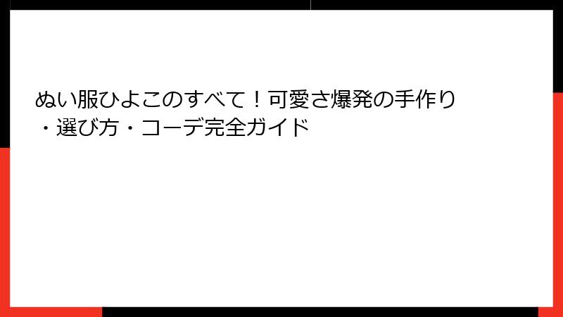 この記事では、ぬい服ひよこの基本から魅力、選び方、手作り方法、活用アイデアまでを詳しく掘り下げていきます。