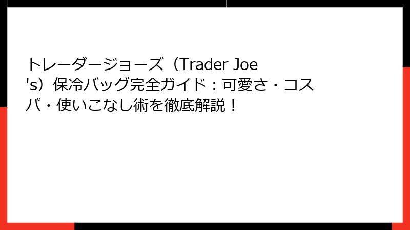 - どうやってゲットする? トレーダージョーズ保冷バッグの購入ガイド&日本輸入のコツ