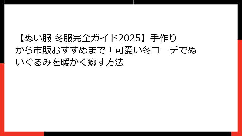 - 【手作りぬい服 冬服でクリエイティブに!初心者でも簡単、3つの人気レシピと材料リスト】