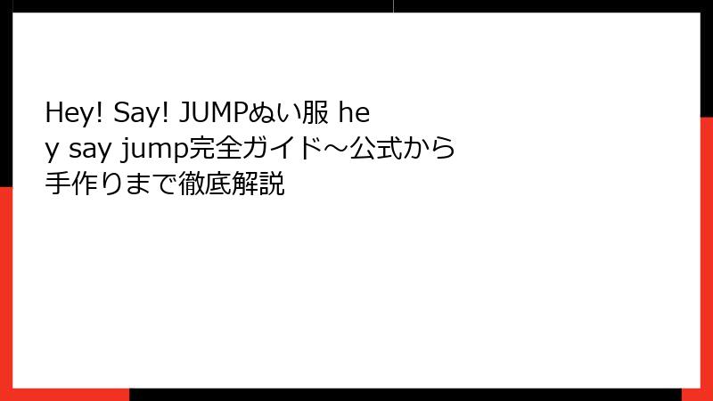- Hey! Say! JUMPぬい服の歴史を振り返る~公式グッズからファン手作りまで