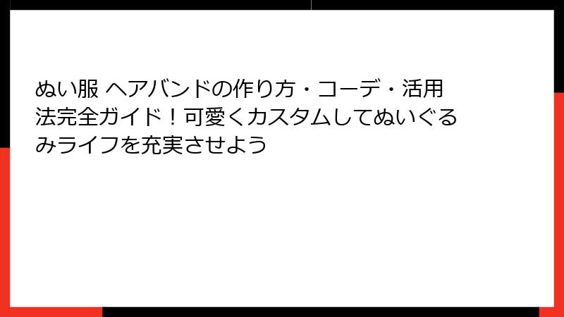 - ぬい服 ヘアバンドの簡単DIY作り方:ステップバイステップでマスターしよう