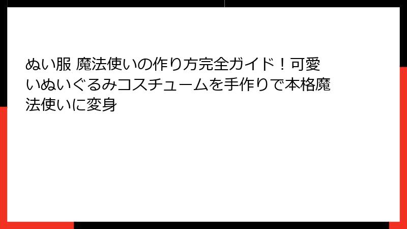 次なる魔法のヒント:ぬい服 魔法使いを超えた創造の世界へ