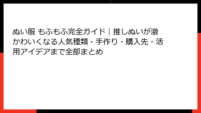 このセクションでは、ぬい服 もふもふの基本をさらに細かく分解して説明します。