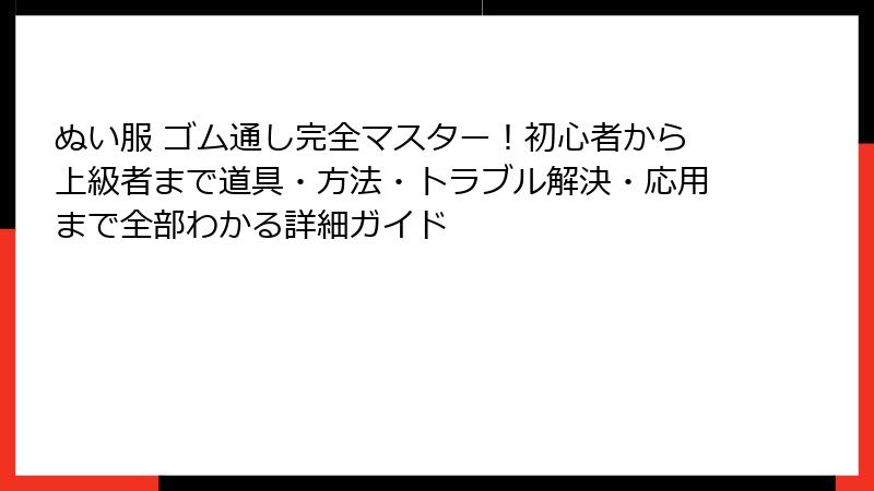 - 「ぬい服 ゴム通し」の基礎知識:なぜ必要でどんな魅力がある?