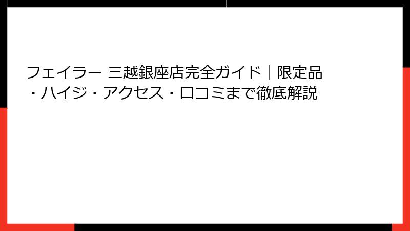 - 銀座三越7F フェイラーショップのアクセス・営業情報完全マップ
