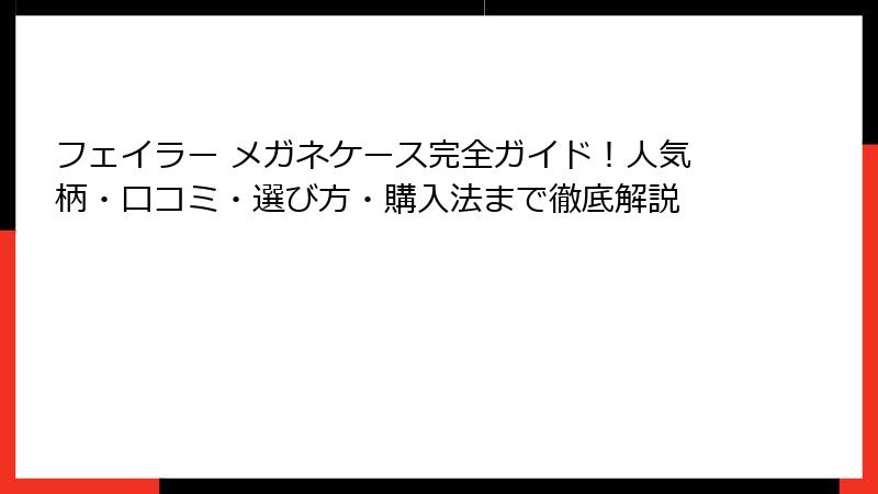 - の見出しタグから始めて、ブログ記事形式で出力して下さい。 複数の タグを使用して、読み応えがあるように。 また、それぞれの タグの中に、複数の タグが、入れ子で含まれるように。 全て、HTMLで出力。 や などの箇条書きのHTMLタグや、tableタグも使用してOK。 ただし、リンクやURLは、絶対に、挿入しない。 私宛の報告や、私宛の解説や、私宛の説明の文章は、一切、不要です。 ブログ記事部分だけ、生成・出力して下さい。 フェイラー メガネケースのメリットを実感!長く使える実用性と日常シーン