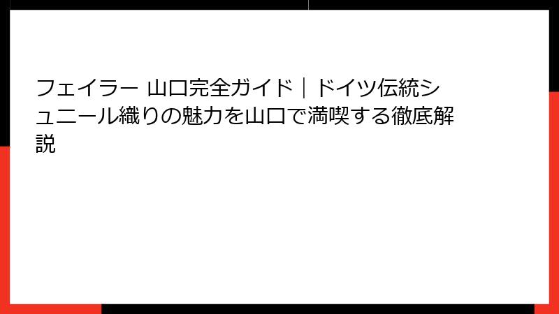 - フェイラー 山口を満喫するためのまとめ:訪れてみたくなる理由