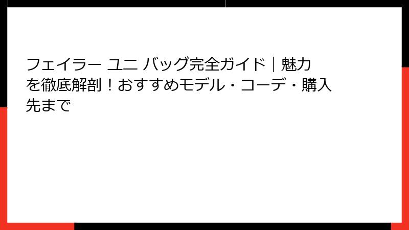 フェイラー ユニ バッグ完全ガイド|魅力を徹底解剖!おすすめモデル・コーデ・購入先まで