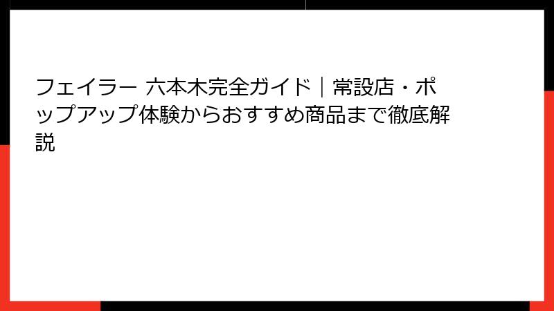 この長大なまとめが、あなたのフェイラー 六本木ライフのバイブルとなりますように。