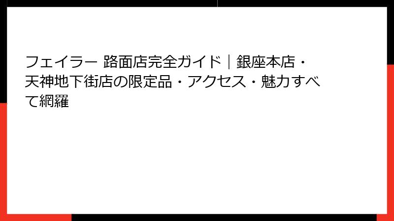 - フェイラー路面店一覧|銀座本店と天神地下街店の住所・営業時間・アクセスを完全網羅