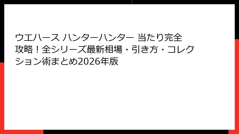 ウエハース ハンターハンター 当たり完全攻略!全シリーズ最新相場・引き方・コレクション術まとめ2026年版