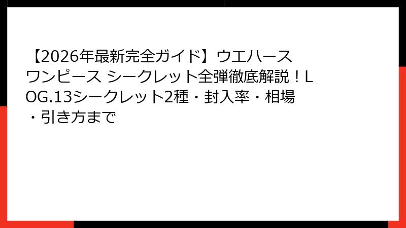 2026年最新トレンド:LOG.13の新要素とウエハース ワンピース シークレットの進化形
