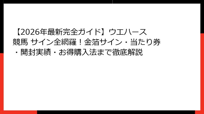- ウエハース 競馬 サインを今すぐお得に集める方法と2026年以降の展望