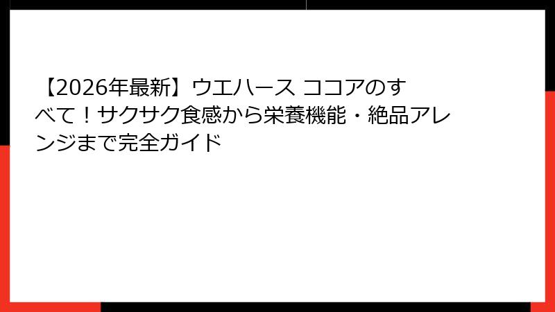 【2026年最新】ウエハース ココアのすべて!サクサク食感から栄養機能・絶品アレンジまで完全ガイド
