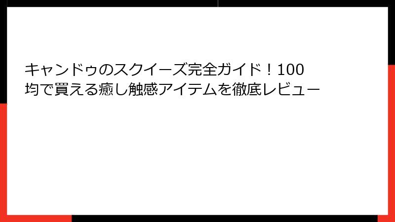 締め文:100円で得られる癒しは無限大!今すぐキャンドゥのスクイーズをチェックして、日常を楽しくしましょう。