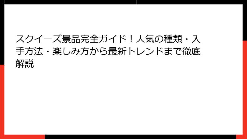 - スクイーズ景品とは?人気の秘密と基本知識を徹底解説